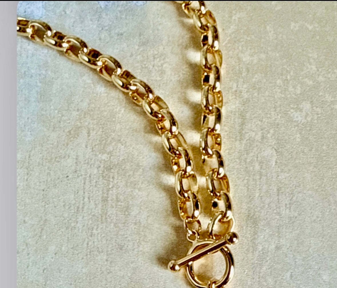 Large LV DISC ON EITHER A PAPER CLIP OR ROLL CHAIN SET IN 18 KARAT GOLD PHIL 17 OR 18 OR 20 INCHES