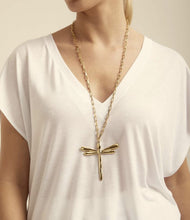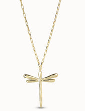Boho chic style necklace formed by medium link chain in gold or silver plated metal and topped with a dragonfly pendant. The perfect complement to your daily looks.