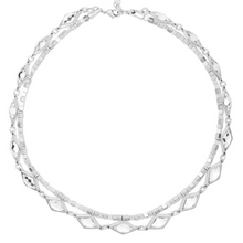 Beautiful silver-plated metal short necklace with 1-strand on two levels. The design includes a strip of carré pin, with rhomboid beads of exclusive white faceted crystals. Handcrafted in Spain.