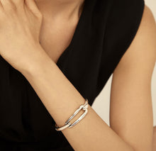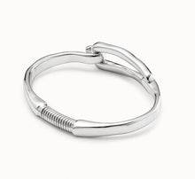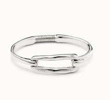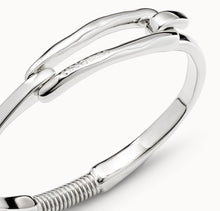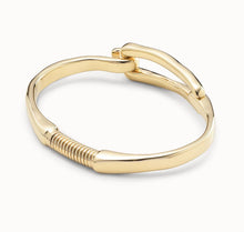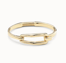 Rigid gold or silver plated bracelet with a rectangular buckle clasp and the UNOde50 brand name engraved on it. Handmade in Spain by UNOde50. Gender neutral style.