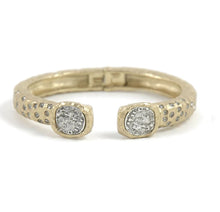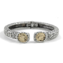 24k gold plated or sterling silver hammered bangle with two antique sterling silver or 24k gold plated coins. Bangle is dotted with Swarovski black diamond crystals.