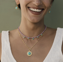 Soothing purple phosphosiderite and vibrant turquoise come together to create a beautiful color story inspired by travels to Antigua, Guatemala. The Vista Beaded Necklace is the unique layer you are looking for this season.